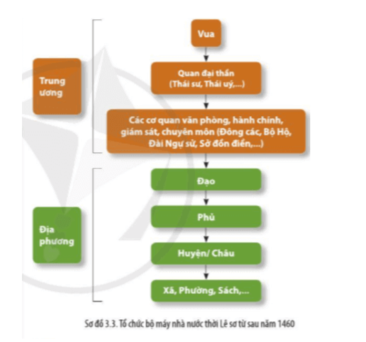 Đọc thông tin và quan sát Sơ đồ 3.3 hãy nêu đặc điểm mô hình nhà nước thời Lê sơ