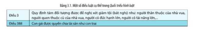 Đọc thông tin và quan sát Bảng 3.1 hãy nêu hoàn cảnh ra đời, nội dung cơ bản và ý nghĩa của bộ Quốc triều hình luật.