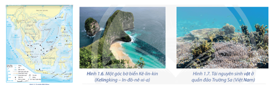 Dựa vào các hình 1.5, 1.6, 1.7 và thông tin trong bài, hãy trình bày khái quát về Biển Đông.