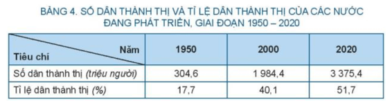 + Các nước đang phát triển có số dân thành thị tăng nhanh và ngày càng chiếm tỉ lệ cao hơn trong tổng số dân.