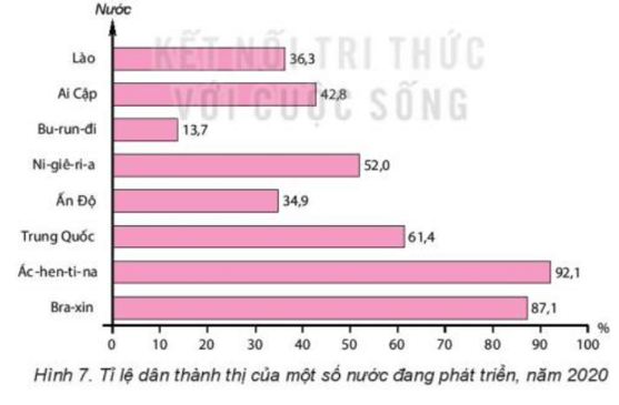 + Tỉ lệ dân thành thị ở các nước đang phát triển nhìn chung là thấp, tuy nhiên một số nước vẫn có tỉ lệ dân thành thị cao.