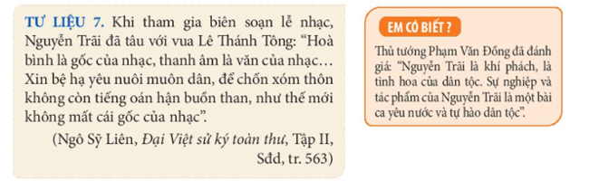 Khai thác Tư liệu 7 và thông tin trong mục, giải thích vì sao Nguyễn Trãi được đánh giá là nhà văn hóa lớn của dân tộc Việt Nam.