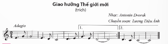 Chỉ ra các kí hiệu đã học (loại nhịp, nhịp độ, cao độ, trường độ, các kí hiệu khác) trong Bài thực hành số 2 - Giao hưởng thế giới mới