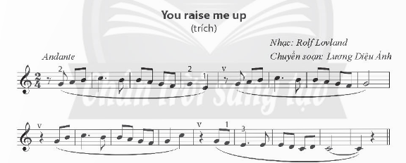 Chỉ ra các kí hiệu đã học (loại nhịp, nhịp độ, cao độ, trường độ, các kí hiệu khác) trong Bài thực hành số 2 - You raise me up.