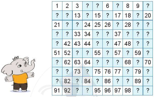 a) Tìm số còn thiếu ở ? rồi đọc bảng các số từ 1 đến 100: