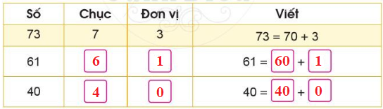 - Xác định số chục, số đơn vị rồi viết số dưới dạng tổng các chục và đơn vị.
