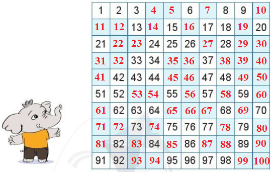 b) Trong Bảng các số từ 1 đến 100, hãy chỉ ra: