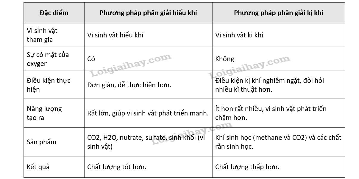 Hãy so sánh phương pháp phân giải hiếu khí và phân giải kị khí.