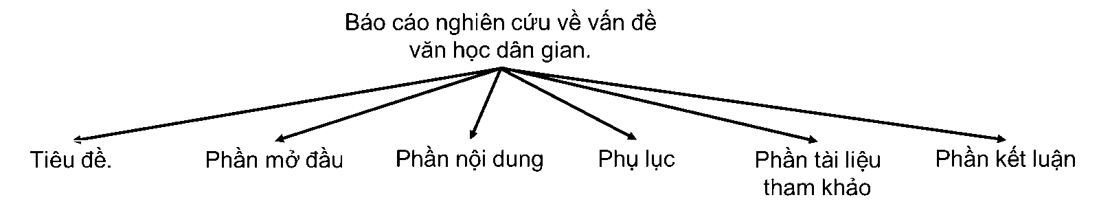 Sử dụng sơ đồ để mô tả cấu trúc và nội dung của từng phần trong một báo cáo nghiên cứu về vấn đề văn học dân gian.