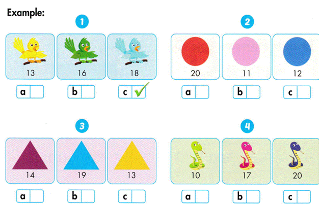 (Có bao nhiêu hình tròn? - 20 con rắn.)