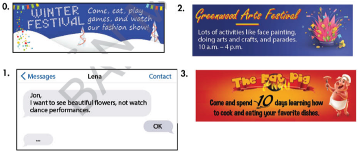 1. Lena: Jon, mình muốn thấy những bông hoa xinh đẹp, không phải xem các tiết mục múa.
