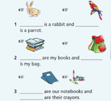 (Đó là vở của chúng tôi và đây là bút màu của họ.)
