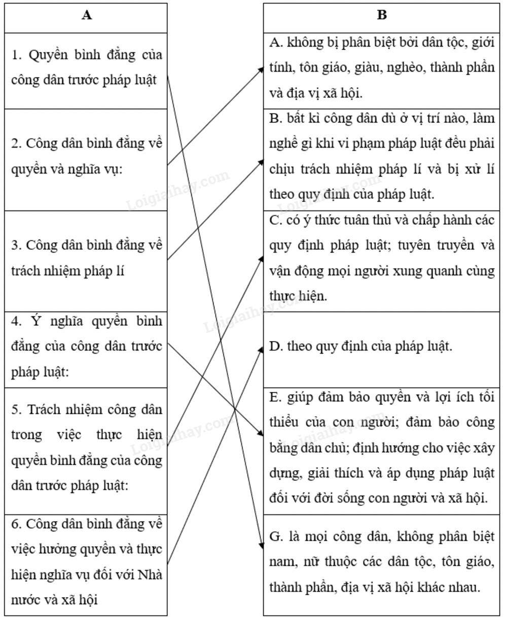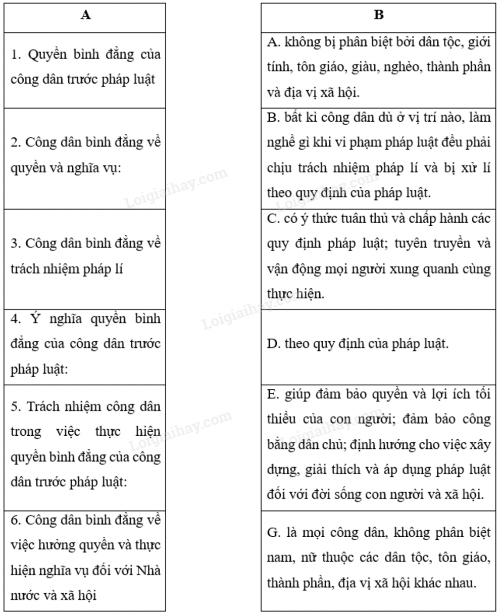 ☐ b. Trong cùng điều kiện, công dân được hưởng quyền và thực hiện nghĩa vụ như nhau.