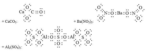 Đá vôi (thành phần chính là CaCO3) được dùng để sản xuất vôi, trong lĩnh vực xây dựng... Barium nitrate Ba(NO3)2 có trong thành phần của kính quang học, gốm, men,… Phèn đơn aluminium sulfate (thành phần chính là Al2(SO4)3) được sử dụng rộng rãi trong xử lí nước thải, trong công nghệ sản xuất giấy, công nghệ nhuộm vải và công nghệ lọc nước và nuôi trồng thuỷ sản,... Dựa vào tắc octet, đề xuất công thức cấu tạo của các chất trên.