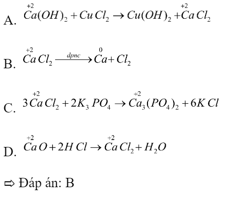 Phản ứng nào sau đây có sự thay đổi số oxi hoá của nguyên tố calcium?