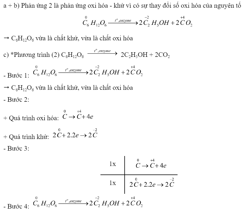 d) - Bước 1: \(\mathop {{C_{12}}}\limits^0 {H_{22}}{O_{11}} + {\rm{ }}{H_2}\mathop S\limits^{ + 6} {O_4} \to \mathop C\limits^{ + 4} {O_2} + {\rm{ }}\mathop S\limits^{ + 4} {O_2} + {\rm{ }}{H_2}O\)
