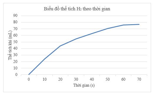 c) Dựa vào đồ thị thấy khoảng 70 giây phản ứng sẽ kết thúc vì khi đó khí thoát ra rất chậm và gần như không đổi.