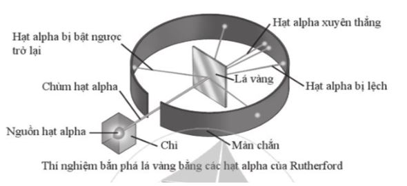 Trong thí nghiệm của Rutherford, khi sử dụng các hạt alpha (ion He2+, kí hiệu là α) bắn vào lá vàng thì: