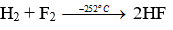 - F2 phản ứng với H2 ngay trong bóng tối và nhiệt độ thấp, phản ứng gây nổ mạnh