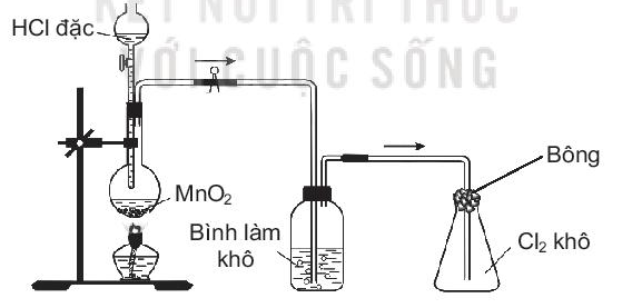 Trong phòng thí nghiệm, khí chlorine được điều chế, làm khô và thu vào bình theo sơ đồ dưới đây: