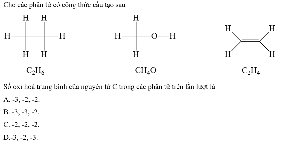 - Trong C2H4, ta có: x.2 + (+1).4 = 0 => x = -2