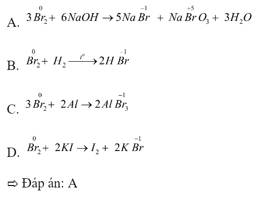 Bromine vừa là chất oxi hoá, vừa là chất khử trong phản ứng nào sau đây?