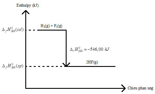 H2(g) + F2(g) → 2HF(g) \({\Delta _r}H_{298}^0 = - 546,00{\rm{ }}kJ\)