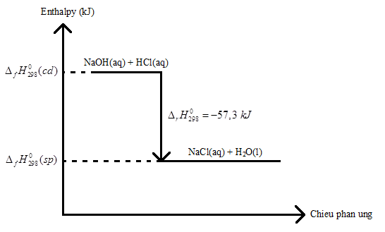 NaOH(aq) + HCl(aq) → NaCl(aq) + H2O(l) \({\Delta _r}H_{298}^0 = - 57,3{\rm{ }}kJ\)