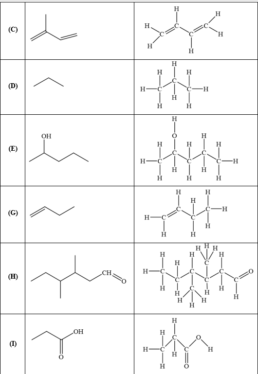 Hãy cho biết dạng mạch carbon tương ứng với các chất sau: