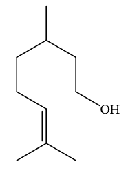 Citronellol là hợp chất được sử dụng tạo mùi hương tự nhiên có nguồn gốc từ các loại thực vật như hoa hồng, phong lữ hoặc sả, có công thức cấu tạo đầy đủ như sau: