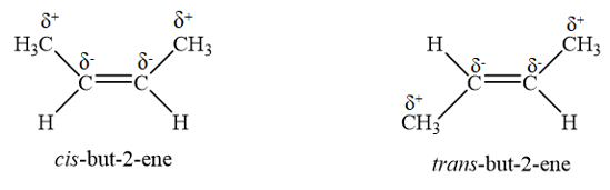 Ví dụ phân từ cis-but-2-ene và trans-but-2-ene đều chứa nhóm -CH3 là nhóm đẩy electron làm phân tử mỗi chất hình thành các momen lưỡng cực yếu C-C như trong hình bên dưới. Tuy nhiên, cis-but-2-ene có tổng moment lưỡng cực không triệt tiêu, còn trans-but-2-ene có tổng moment lưỡng cực triệt tiêu. Do đó cis-but-2-ene là phần tử phân cực nhẹ trans-but-2-ene là phân tử không phân cực, dẫn đến nhiệt độ sôi của cis-but-2-ene cao hơn so với trans-but-2-ene.