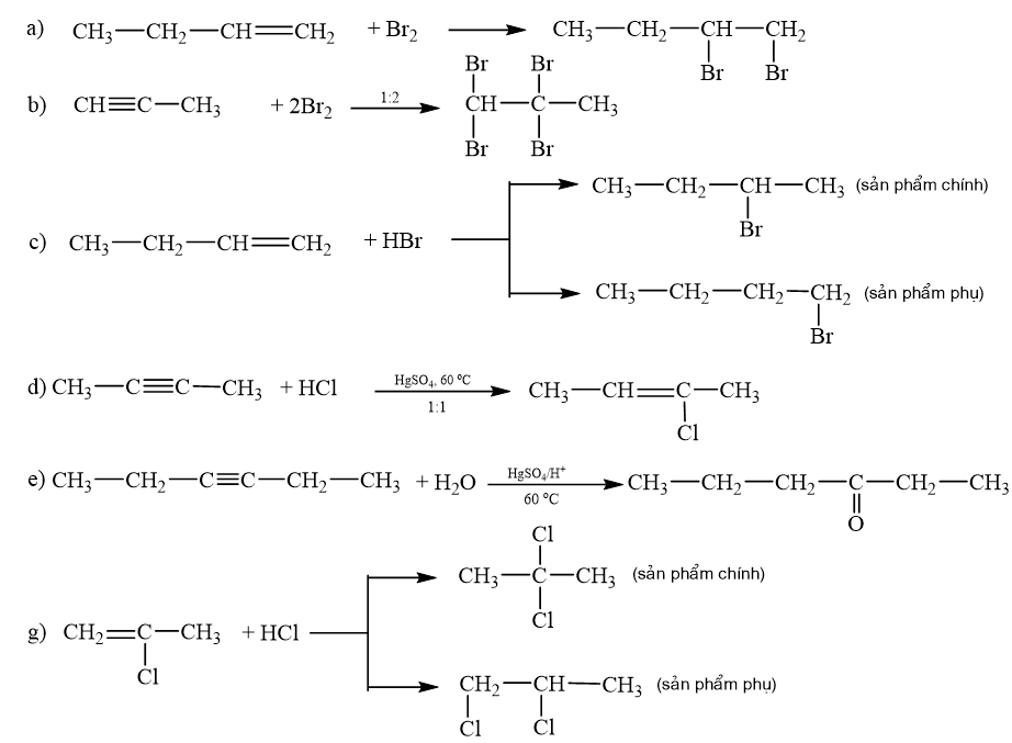 electron π trong liên trong C≡C bị giữ chặt hơn so với các electron π trong C=C, dẫn đến khả năng phản ứng cộng (X2, HX, H2O) của alkyne kém hơn alkene tương ứng.