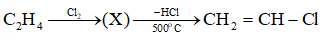 \[\begin{array}{l}{\rm{C}}{{\rm{H}}_2} = {\rm{C}}{{\rm{H}}_2} + {\rm{C}}{{\rm{l}}_{\rm{2}}} \to {\rm{C}}{{\rm{H}}_{\rm{2}}}{\rm{Cl}} - {\rm{C}}{{\rm{H}}_{\rm{2}}}{\rm{Cl}}\\{\rm{C}}{{\rm{H}}_{\rm{2}}}{\rm{Cl}} - {\rm{C}}{{\rm{H}}_{\rm{2}}}{\rm{Cl}} \to {\rm{C}}{{\rm{H}}_{\rm{2}}} = {\rm{CH}} - {\rm{Cl}} + {\rm{HCl}}\end{array}\]