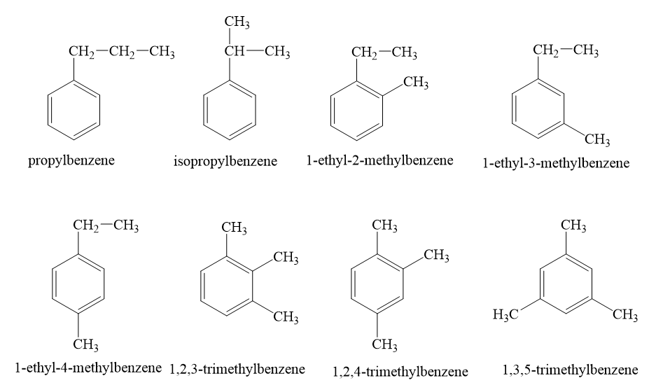 Viết công thức cấu tạo và gọi tên các arene có công thức phân tử C9H12.