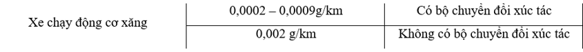 Tỉ lệ phát thải của xe chạy động cơ xăng khi không có bộ chuyển đổi xúc tác là 0,002 g/km.