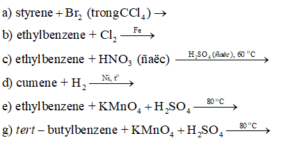 e) và g) là các phản ứng oxi hóa của alkylbenzene với dung dịch KMnO4 trong môi trường acid.