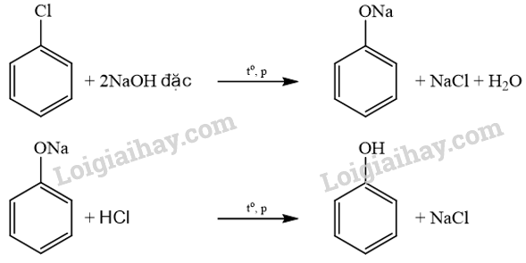 b) Chlorobenzene tác dụng với NaOH, xảy ra phản ứng thế Cl bằng nhóm –OH tạo thành phenol, là một acid, phenol tác dụng với NaOH tạo thành muối sodium phenolate ngay sau đó.