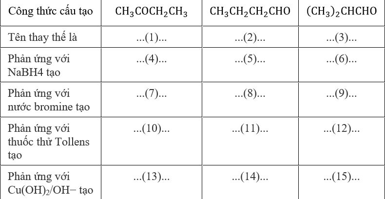 Trong các chất sau: (1)CH3CH2CHO, (2) CH3CH(OH)CH3, (3) (CH3)2CHCHO, (4) CH2=CHCH2OH ,những chất nào phản ứng với H2 hoặc sinh ra cùng một sản phẩm NaBH4?