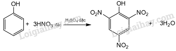 Phenol phản ứng với dung dịch nitric acid đặc trong dung dịch sulfuric acid đặc tạo thành sản phẩm 2,4,6 – trinitrophenol (picric acid).