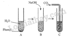 - Khi cho phenol vào ống nghiệm A, do phenol tan kém trong nước nên dung dịch có màu trắng đục (dung dịch phenol bão hòa).