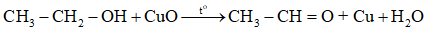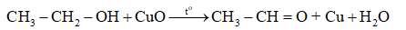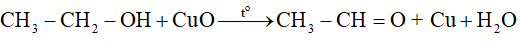 – Khi nhúng dây đồng đang nóng vào ống nghiệm chứa ethanol, xảy ra phản ứng oxi hoá ethanol tạo aldehyde acetic và đồng kim loại có màu vàng đỏ: