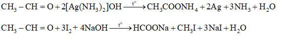 \( \Rightarrow {\rm{C}}{{\rm{H}}_{\rm{3}}}{\rm{CHO}}\)(acetaldehyde) vừa phản ứng được với thuốc thử Tollens vừa phản ứng tạo iodoform.