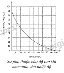 Sự phụ thuộc của độ tan khí ammonia trong nước vào nhiệt độ được mô tả ở hình bên. Dựa vào đồ thị ở hình bên, hãy xác định: