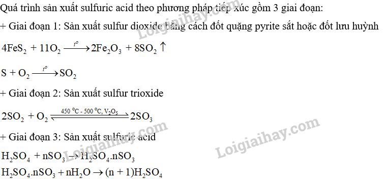 Trong công nghiệp, sulfuric acid được sản xuất trong công nghiệp bằng phương pháp tiếp xúc, nguyên liệu chính là sulfur, quặng pyrite (chứa FeS2)