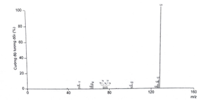 Khối lượng mol phân tử của naphthalene được xác định trên phổ khối lượng tương ứng với peak có giá trị m/z lớn nhất. Do đó, từ phổ khối lượng của naphthalene, ta có: \[{{\rm{M}}_{naphthalene}} = 128\]