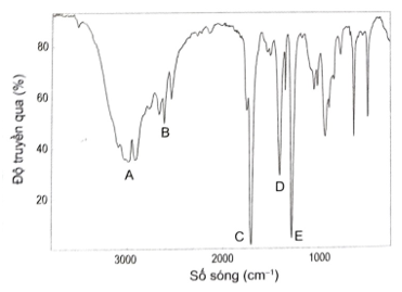 b) Dựa vào phổ IR bên, hãy cho biết có thể xác định được nhóm chức carboxyl có trong acetic acid từ peak nào.
