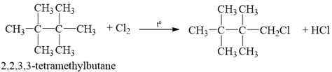 Alkane tác dụng với chlorine đun nóng chỉ tạo một dẫn xuất monochloro duy nhất là alkane có tính đối xứng.