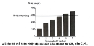 Quan sát biểu đồ thể hiện nhiệt độ sôi của 6 alkane đầu tiên.