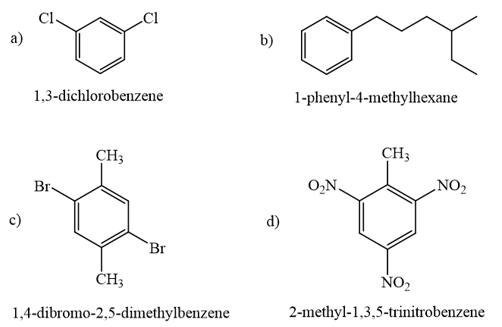 Nhiều hợp chất thơm được gọi theo tên thông thường (toluene, xylene,...). Khi gọi theo tên thay thế, vòng benzene được xem là mạch chính. Khi có hai nhóm thế trên vòng benzene, vị trí của chúng có thể được chỉ ra bằng các chữ số 1,2, 1,3 hay 1,4 hoặc bằng các chữ tương ứng là ortho (o), meta (m) hay para (p).