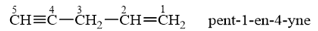 a) Khi hydrocarbon vừa có liên kết đôi, vừa có liên kết ba, chú ý đánh số ưu tiên liên kết đôi hơn liên kết ba.